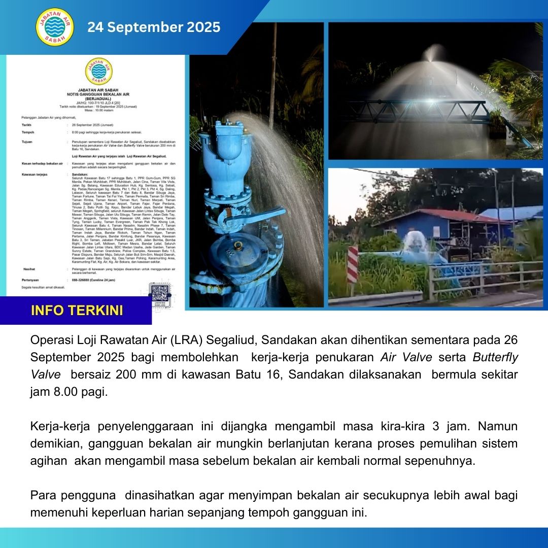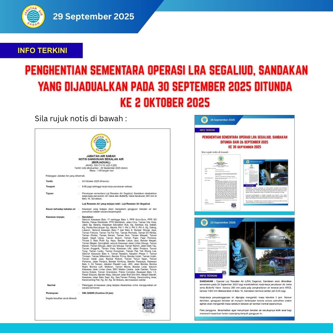 INFO TERKINI - PENGHENTIAN SEMENTARA OPERASI LRA SEGALIUD, SANDAKAN DITUNDA DARI 26 SEPTEMBER 2025 KE 30 SEPTEMBER 2025