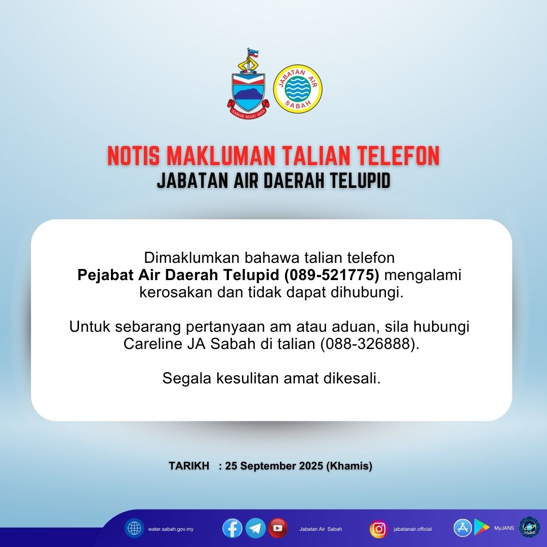 NOTIS MAKLUMAN TALIAN TELEFON JABATAN AIR DAERAH TELUPID