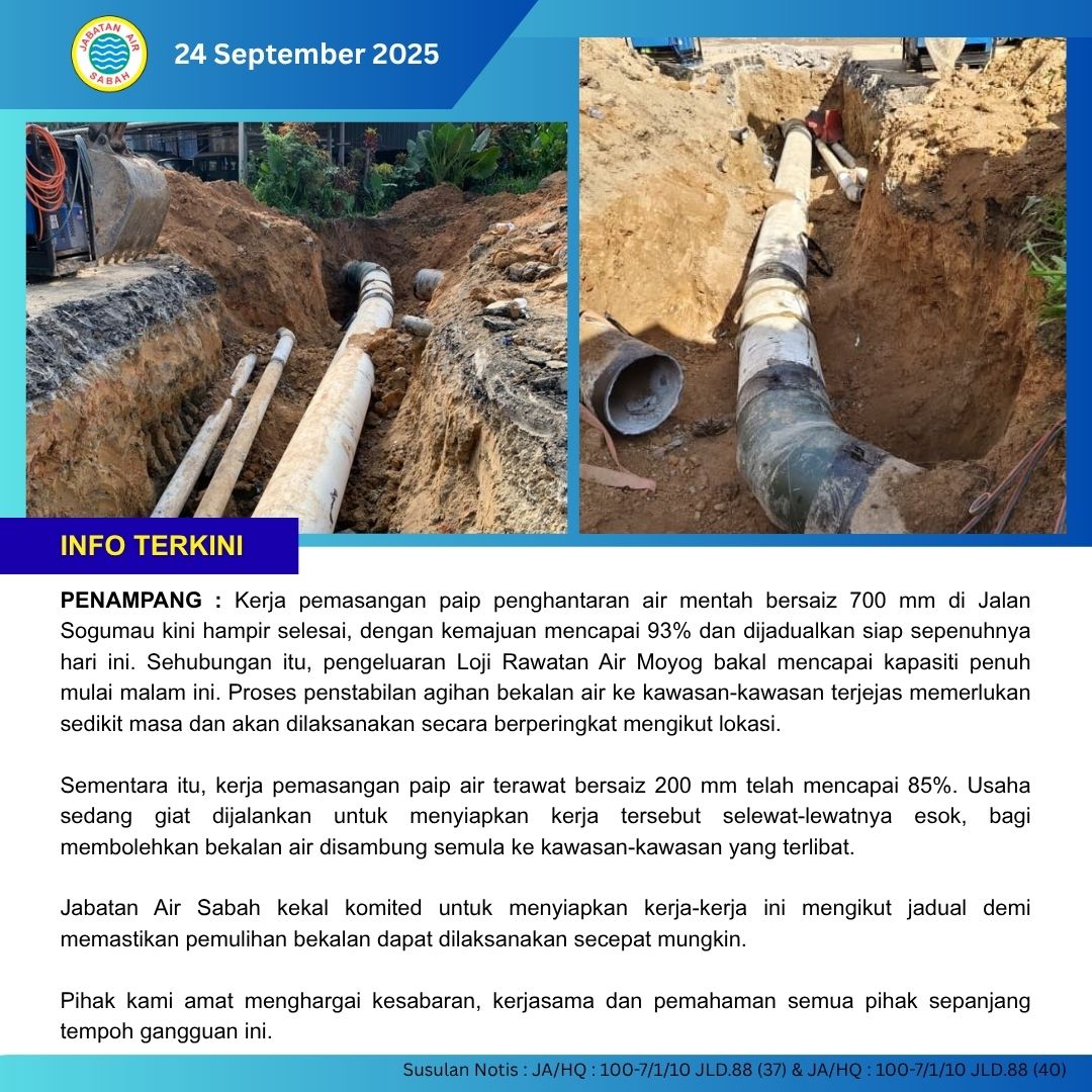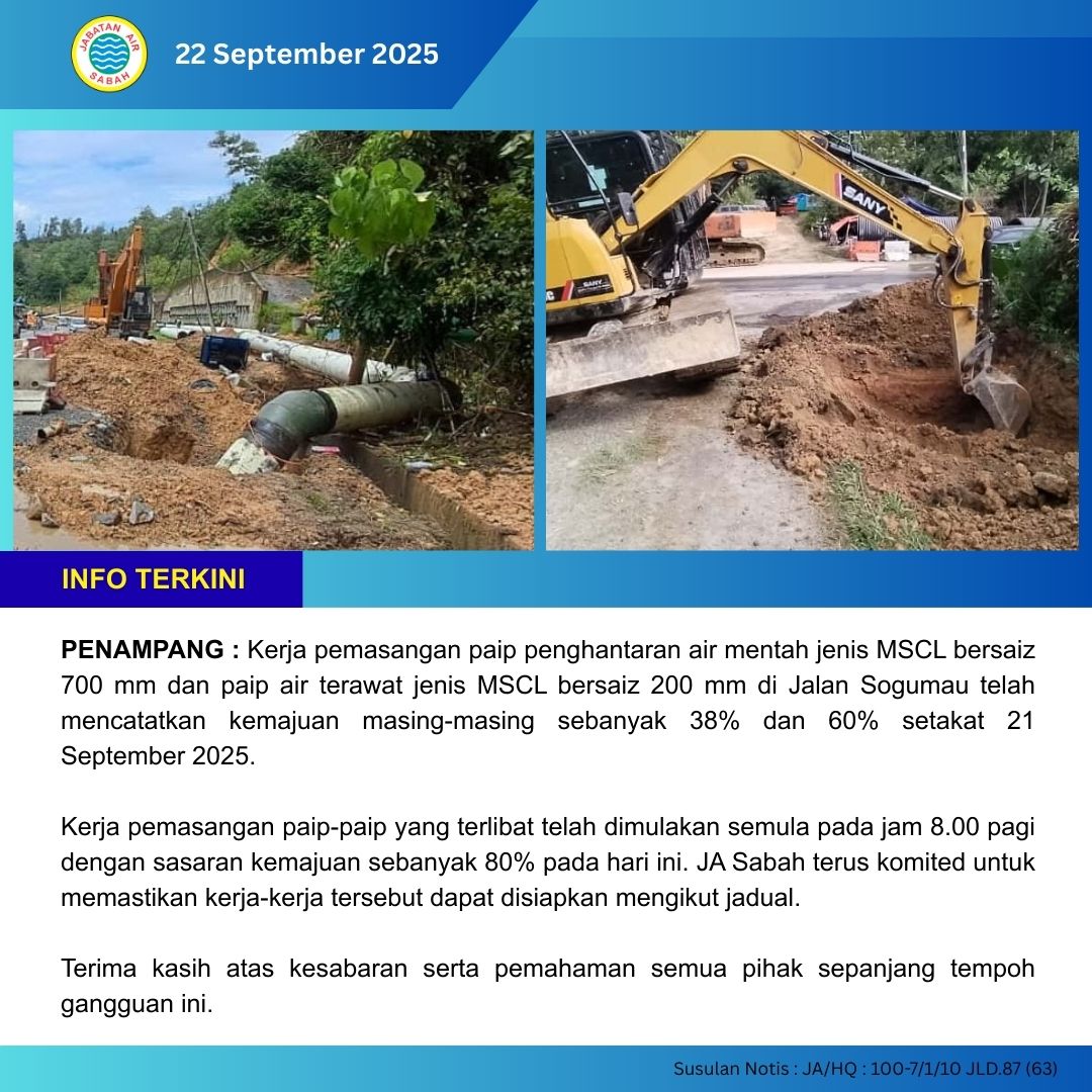 INFO TERKINI - KEMAJUAN KERJA PEMASANGAN PAIP DI JALAN SOGUMAU, PENAMPANG
