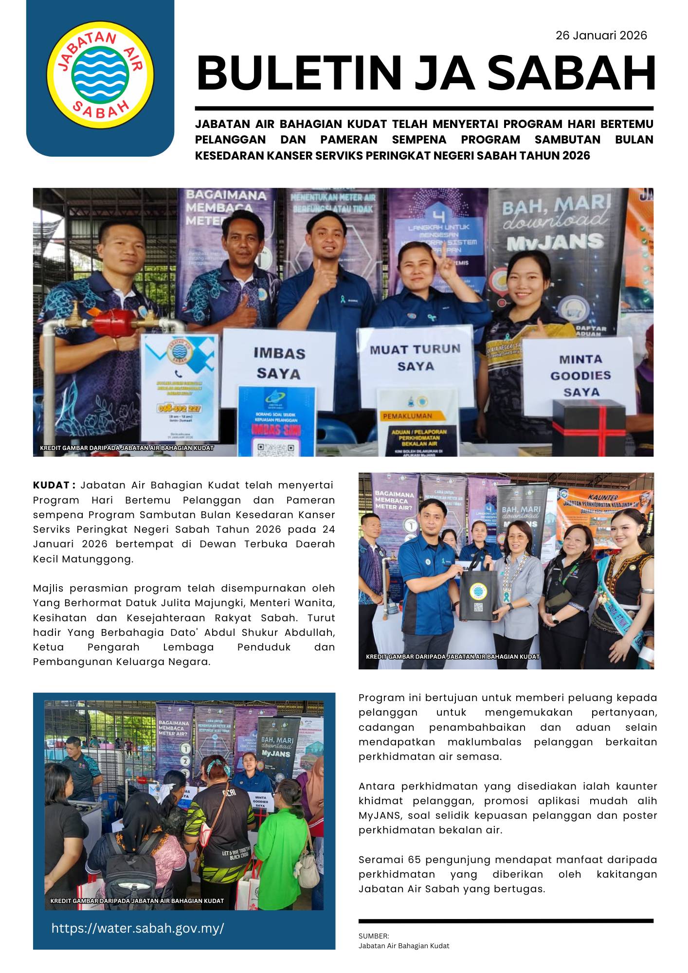 14. JABATAN AIR BAHAGIAN KUDAT TELAH MENYERTAI PROGRAM HARI BERTEMU PELANGGAN DAN PAMERAN SEMPENA PROGRAM SAMBUTAN BULAN KESEDARAN KANSER SERVIKS PERINGKAT NEGERI SABAH TAHUN 2026