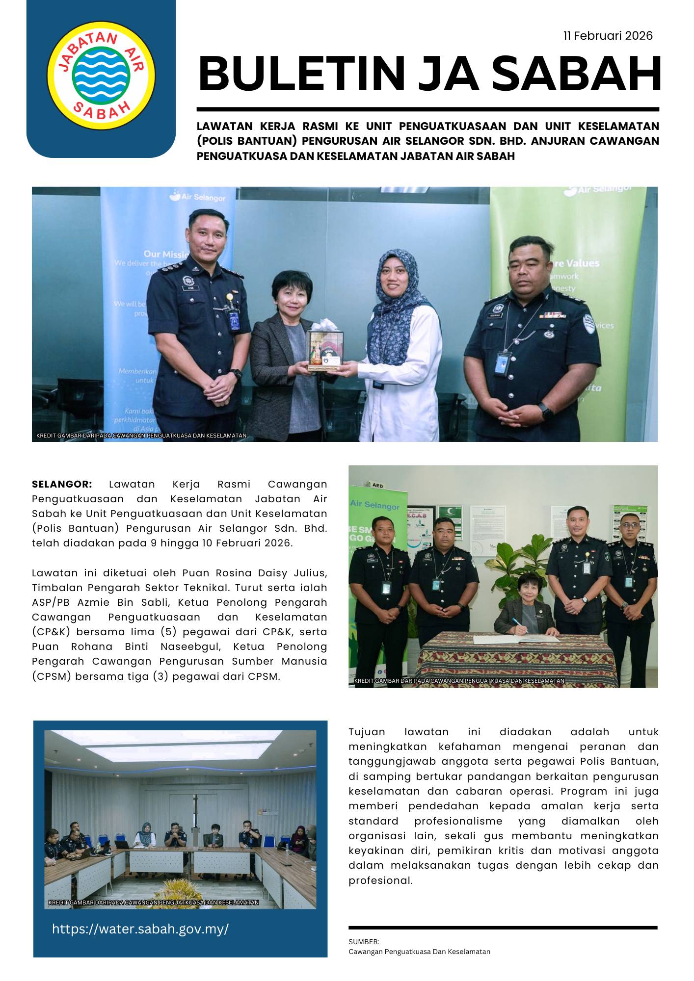 9. LAWATAN KERJA RASMI KE UNIT PENGUATKUASAAN DAN UNIT KESELAMATAN (POLIS BANTUAN) PENGURUSAN AIR SELANGOR SDN. BHD. ANJURAN CAWANGAN PENGUATKUASA DAN KESELAMATAN JABATAN AIR SABAH