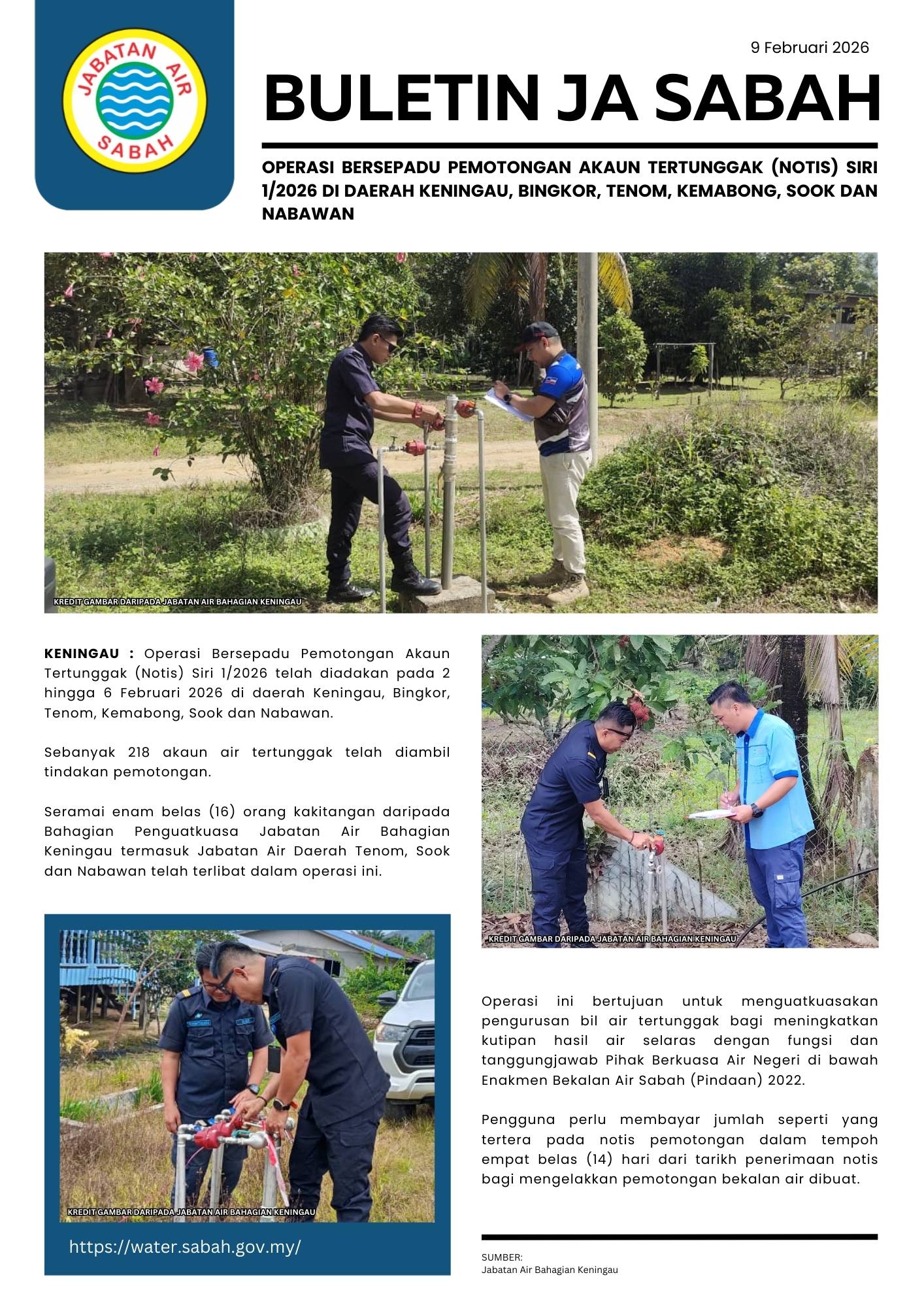 10. OPERASI BERSEPADU PEMOTONGAN AKAUN TERTUNGGAK (NOTIS) SIRI 1/2026 DI DAERAH KENINGAU, BINGKOR, TENOM, KEMABONG, SOOK DAN NABAWAN