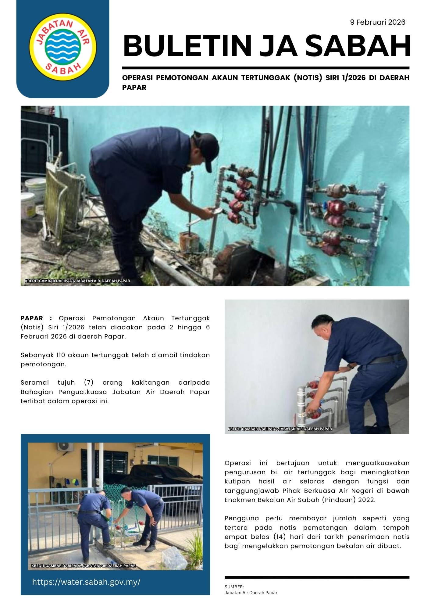 3. OPERASI BERSEPADU PEMOTONGAN AKAUN TERTUNGGAK (NOTIS) SIRI 1/2026 DI BAHAGIAN KUDAT DAN DAERAH KECIL PULAU BANGGI