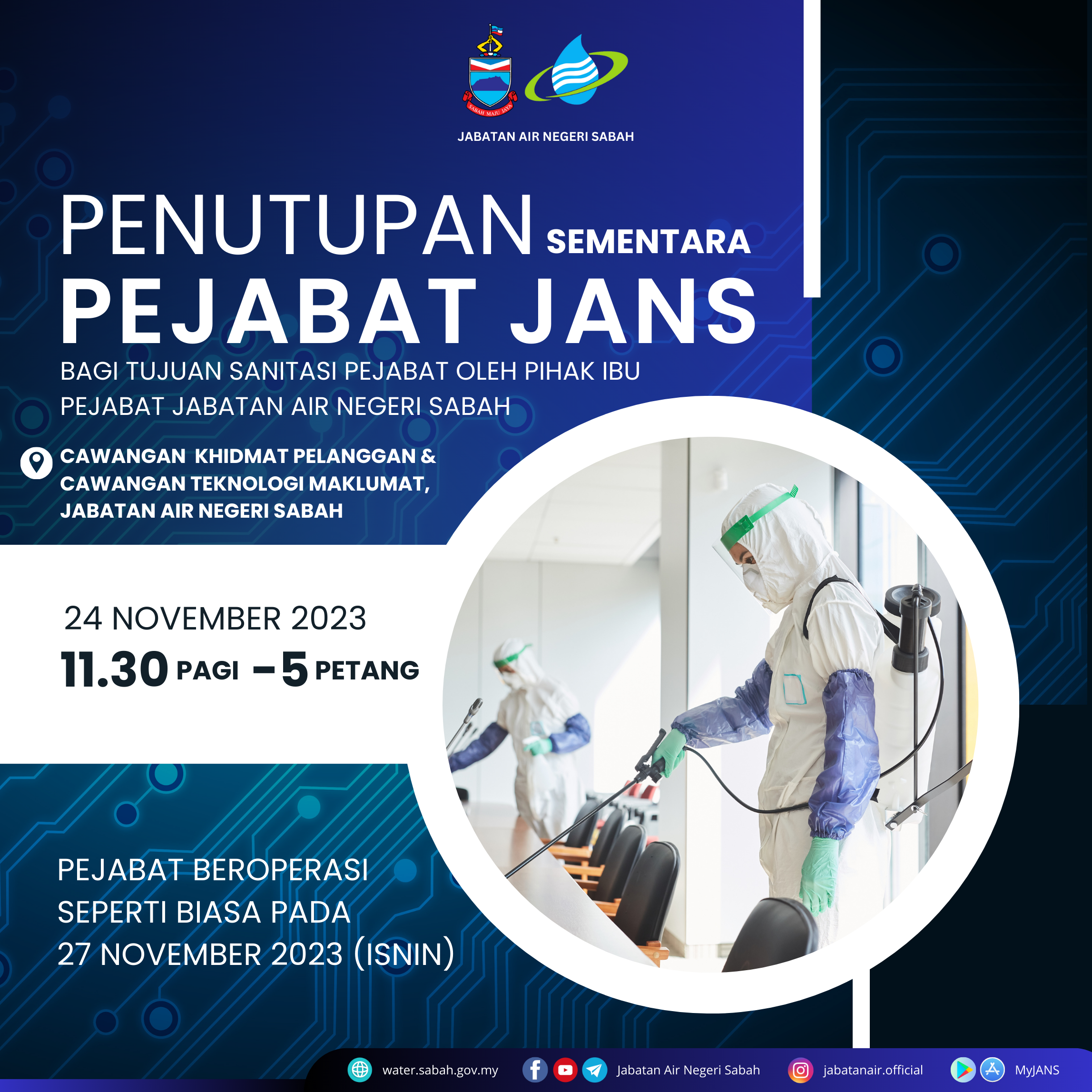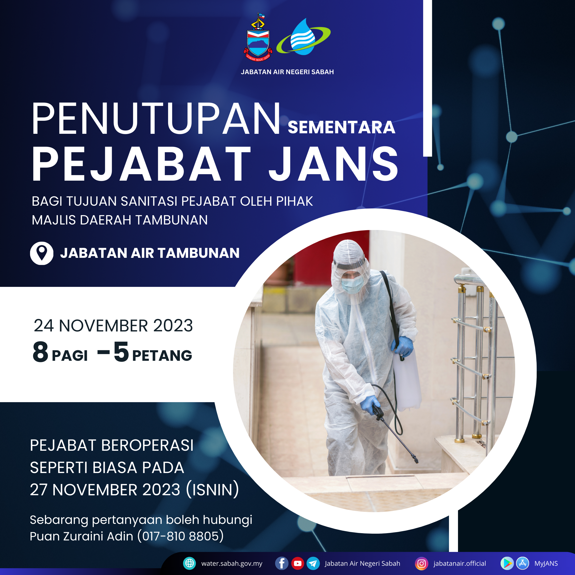 Adalah dimaklumkan bahawa, Jabatan Air Sandakan, Kinabatangan, Beluran dan Membakut akan mengadakan operasi pemotongan bekalan air bermula pada 23 Oktober hingga 03 November 2023.