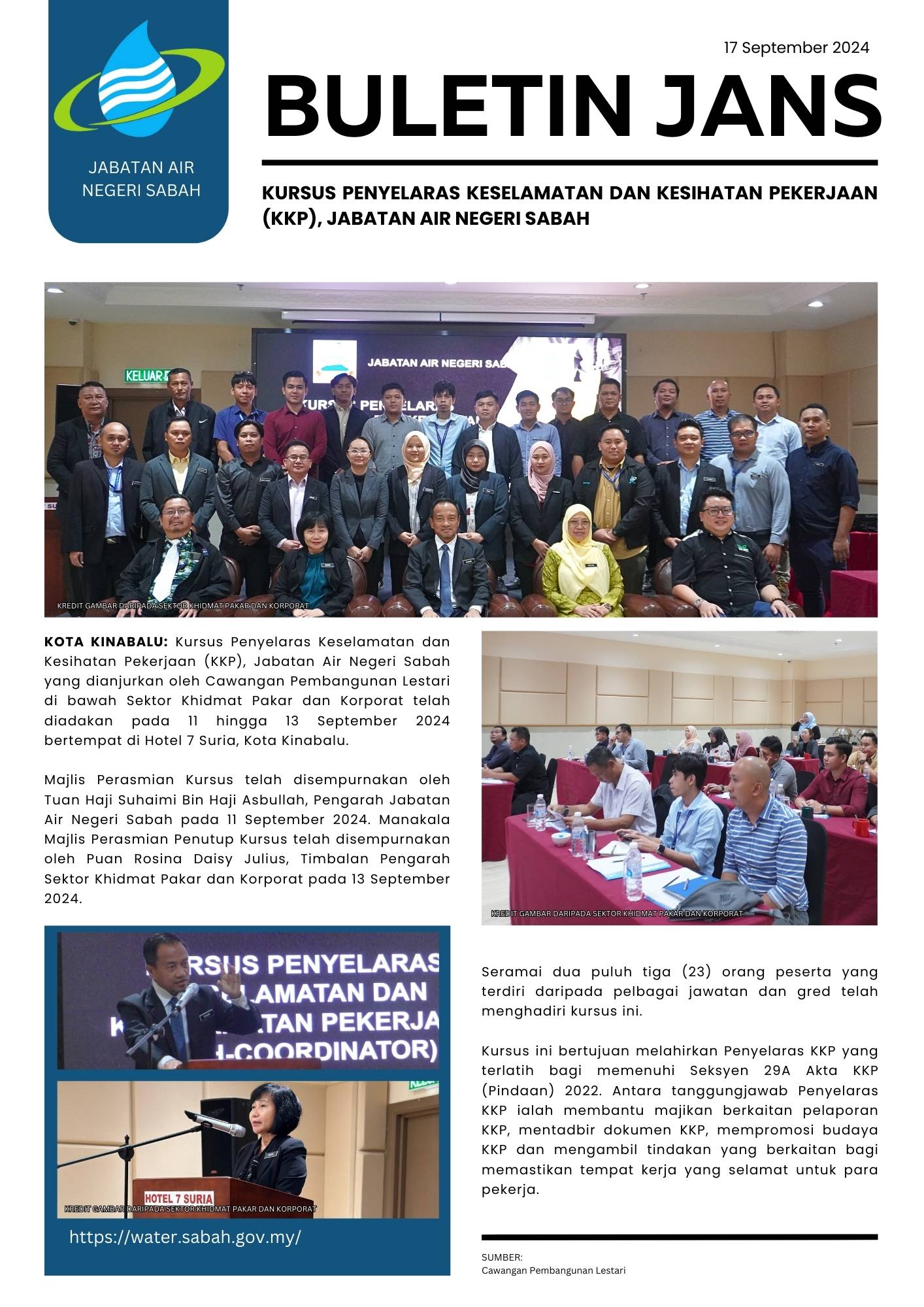 201. KURSUS PENYELARAS KESELAMATAN DAN KESIHATAN PEKERJAAN (KKP), JABATAN AIR NEGERI SABAH