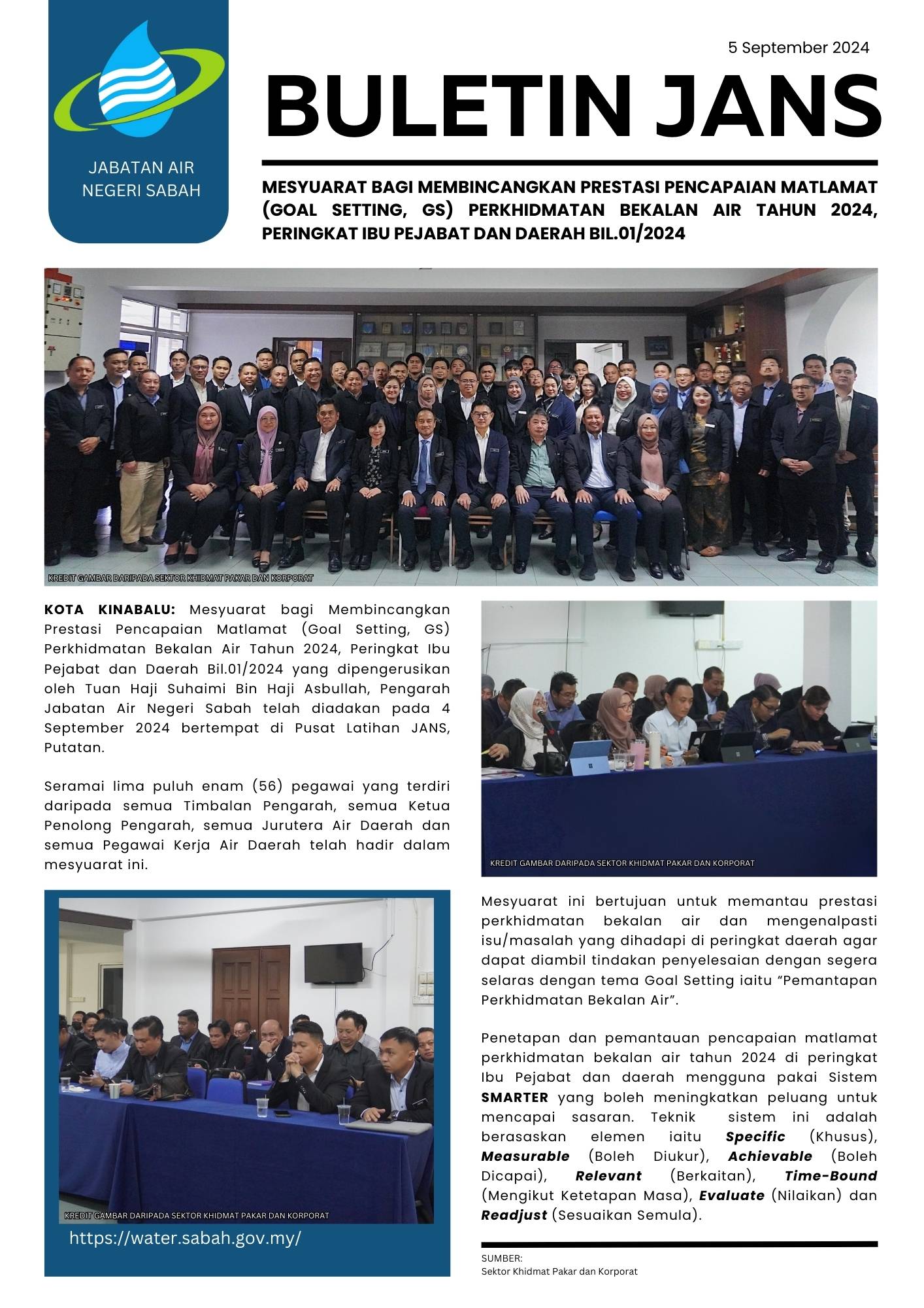 206. MESYUARAT BAGI MEMBINCANGKAN PRESTASI PENCAPAIAN MATLAMAT (GOAL SETTING, GS) PERKHIDMATAN BEKALAN AIR TAHUN 2024, PERINGKAT IBU PEJABAT DAN DAERAH BIL.01/2024