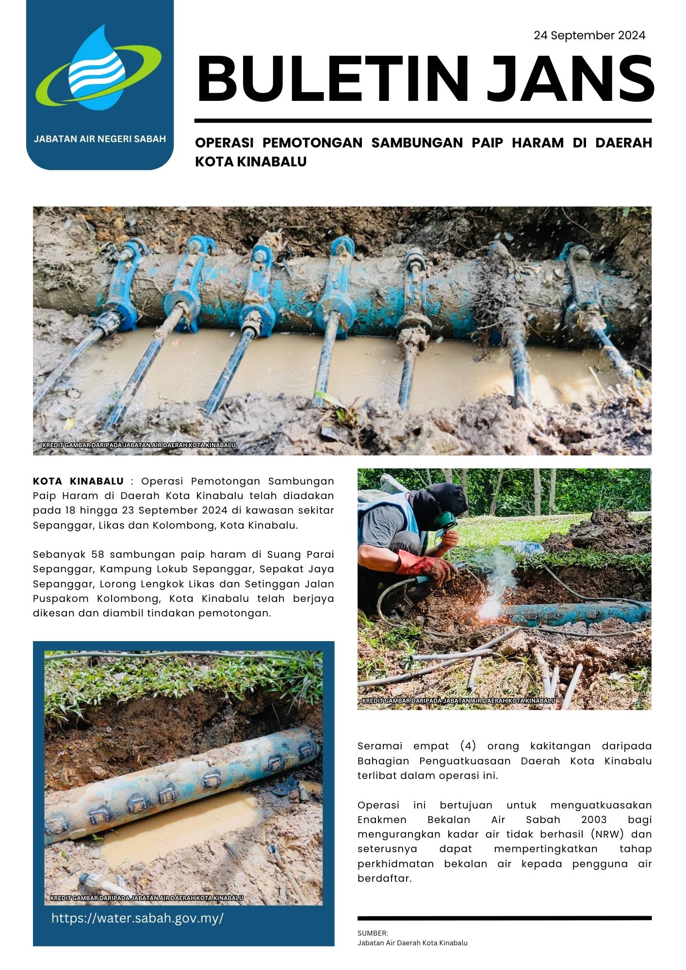 200. OPERASI PEMOTONGAN SAMBUNGAN PAIP HARAM DI DAERAH KOTA KINABALU