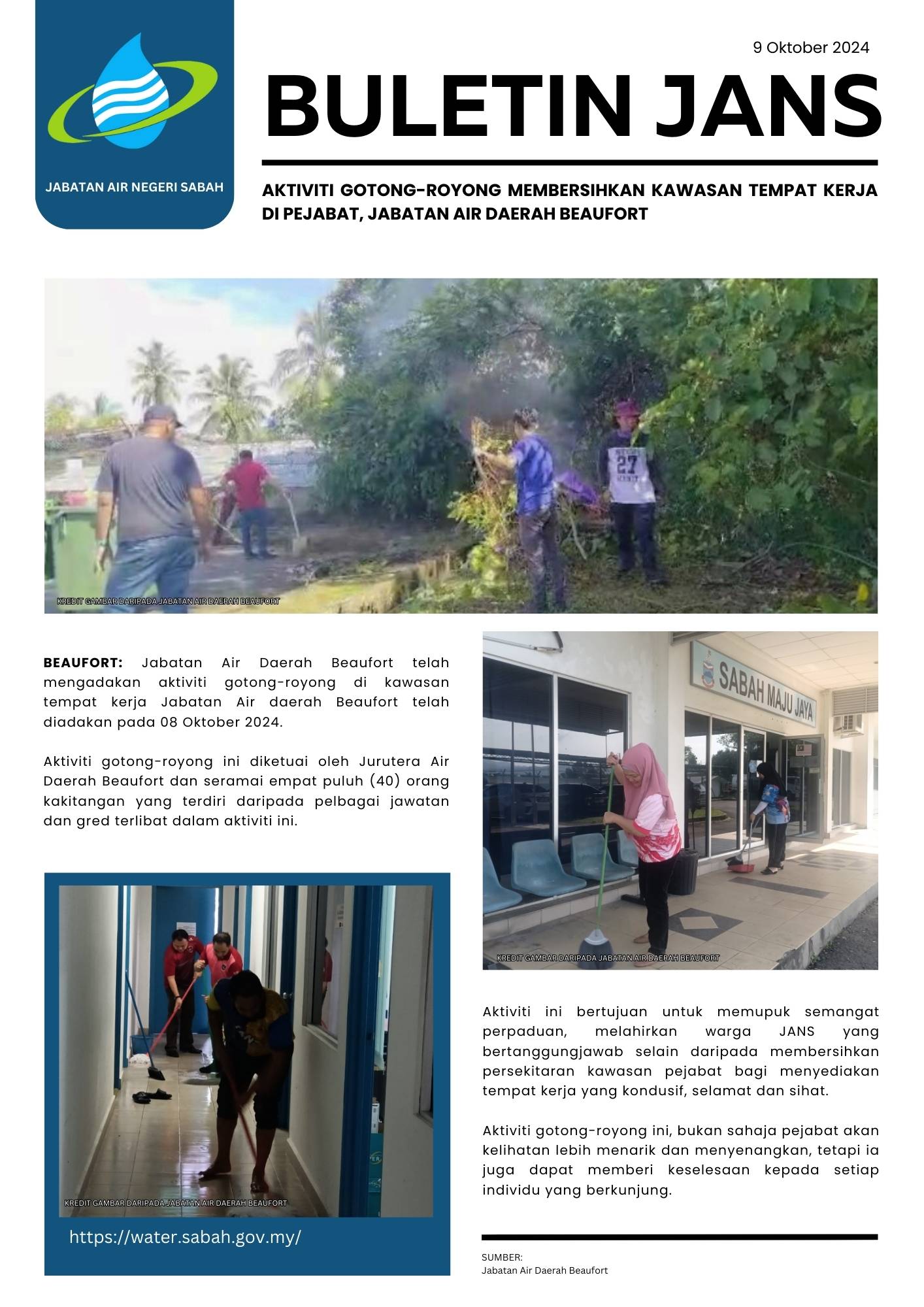 197. AKTIVITI GOTONG-ROYONG MEMBERSIHKAN KAWASAN TEMPAT KERJA DI PEJABAT, JABATAN AIR DAERAH BEAUFORT
