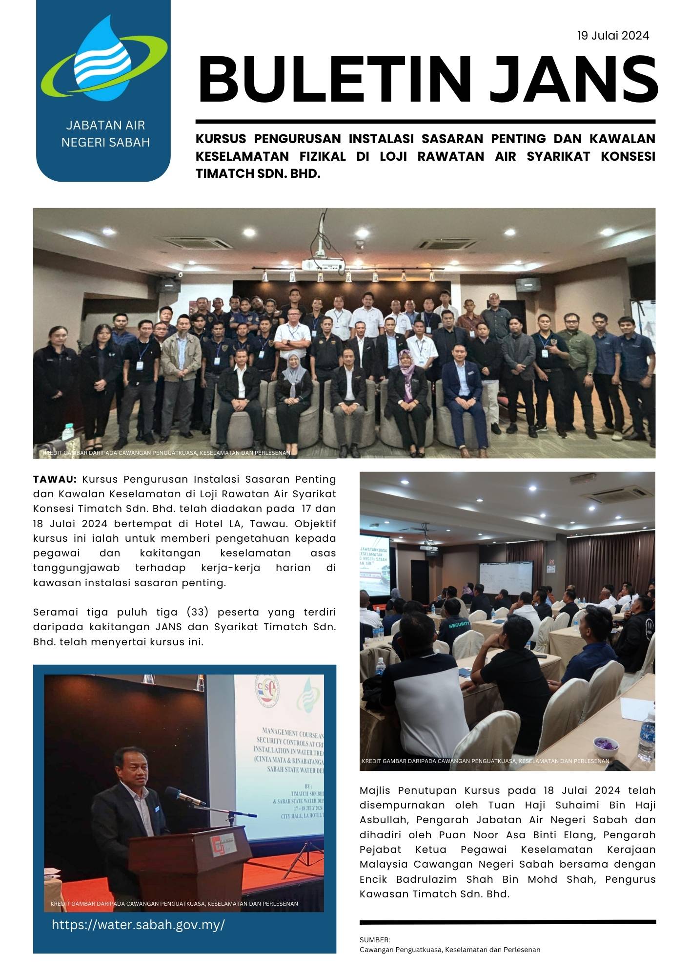 232. KURSUS PENGURUSAN INSTALASI SASARAN DAN KAWALAN KESELAMATAN FIZIKAL DI LOJI RAWATAN AIR SYARIKAT KONSESI TIMATCH SDN. BHD.
