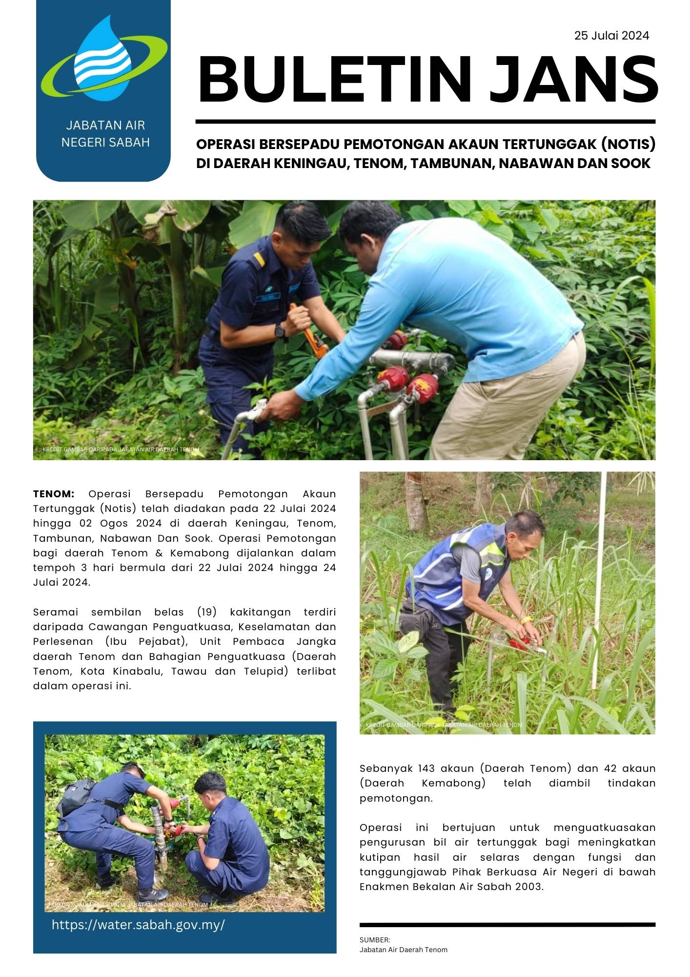 229. OPERASI BERSEPADU PEMOTONGAN AKAUN TERTUNGGAK (NOTIS) DI DAERAH KENINGAU, TENOM, TAMBUNAN, NABAWAN DAN SOOK