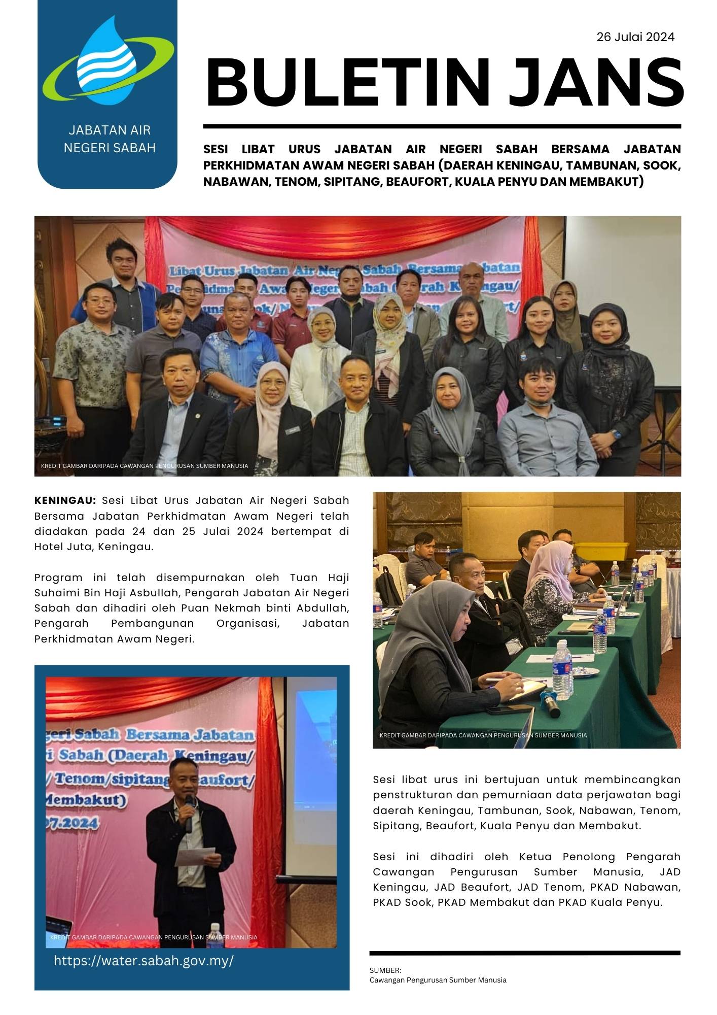 231. SESI LIBAT URUS JABATAN AIR NEGERI SABAH BERSAMA JABATAN AIR PERKHIDMATAN AWAM NEGERI SABAH (DAERAH KENINGAU, TAMBUNAN, SOOK, NABAWAN, TENOM, SIPITANG, BEAUFORT, KUALA PENYU DAN MEMBAKUT)