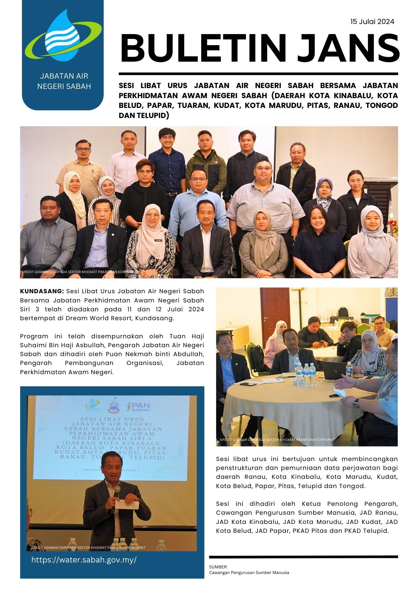 235. SESI LIBAT URUS KE DAERAH-DAERAH JABATAN AIR NEGERI SABAH BERSAMA JABATAN PERKHIDMATAN AWAM NEGERI SABAH (DAERAH SANDAKAN, BELURAN, KINABATANGAN, LAHAD DATU, SEMPORNA, KUNAK, TAWAU DAN PULAU SEBATIK)