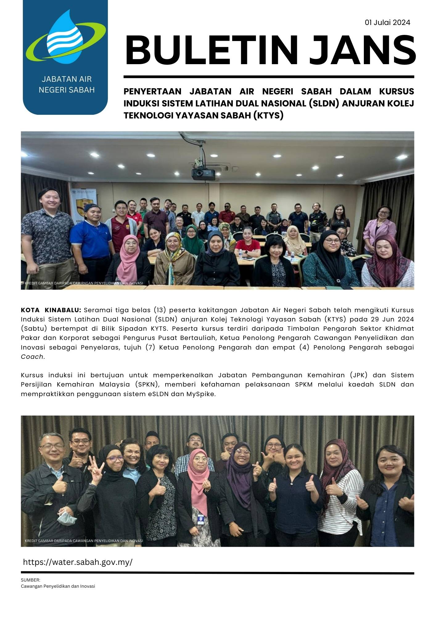 238. PENYERTAAN JABATAN AIR NEGERI SABAH DALAM KURSUS INDUKSI SISTEM LATIHAN DUAL NASIONAL (SLDN) ANJURAN KOLEJ TEKNOLOGI YAYASAN SABAH (KYTS)