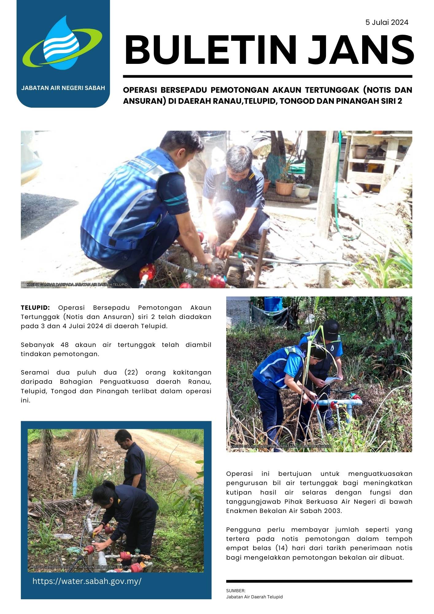 226. OPERASI BERSEPADU PEMOTONGAN AKAUN TERTUNGGAK (NOTIS) DI DAERAH LAHAD DATU, TUNGKU, KUNAK DAN SEMPORNA