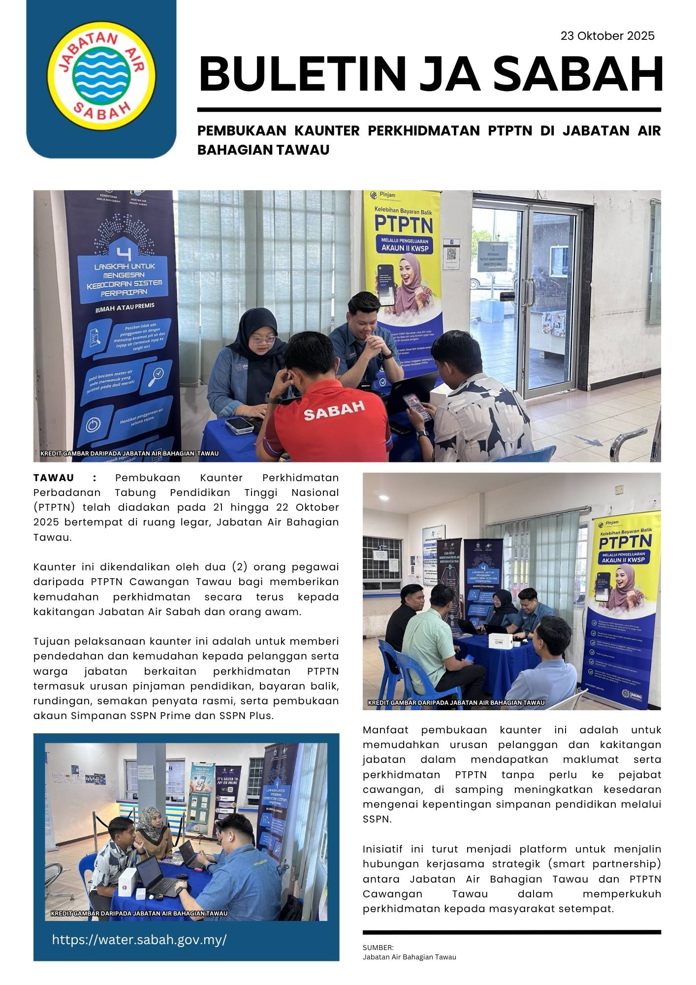 PEMBUKAAN KAUNTER PERKHIDMATAN PTPTN DI JABATAN AIR BAHAGIAN TAWAU