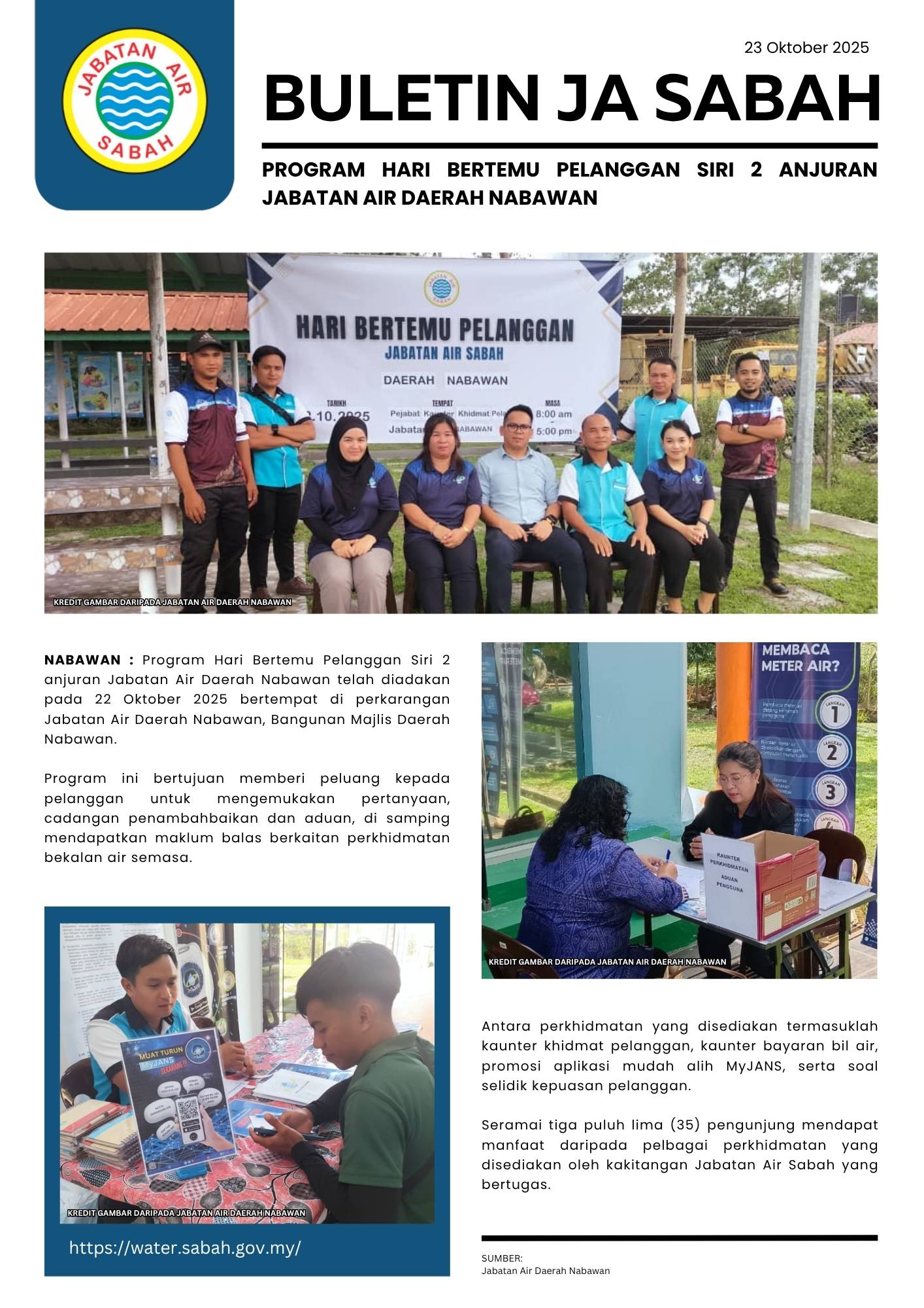 PROGRAM HARI BERTEMU PELANGGAN SIRI 2 ANJURAN JABATAN AIR DAERAH NABAWAN