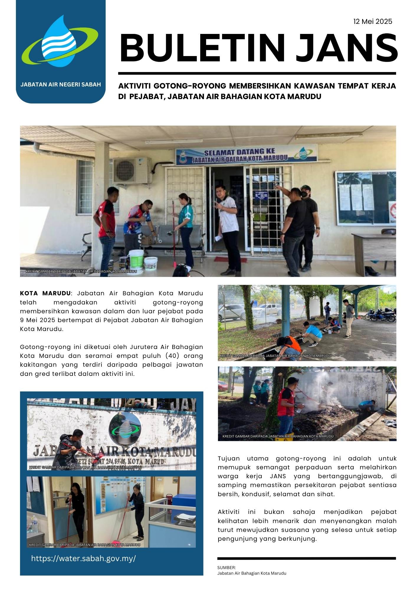 131. AKTIVITI GOTONG-ROYONG MEMBERSIHKAN KAWASAN TEMPAT KERJA DI PEJABAT, JABATAN AIR BAHAGIAN KOTA MARUDU