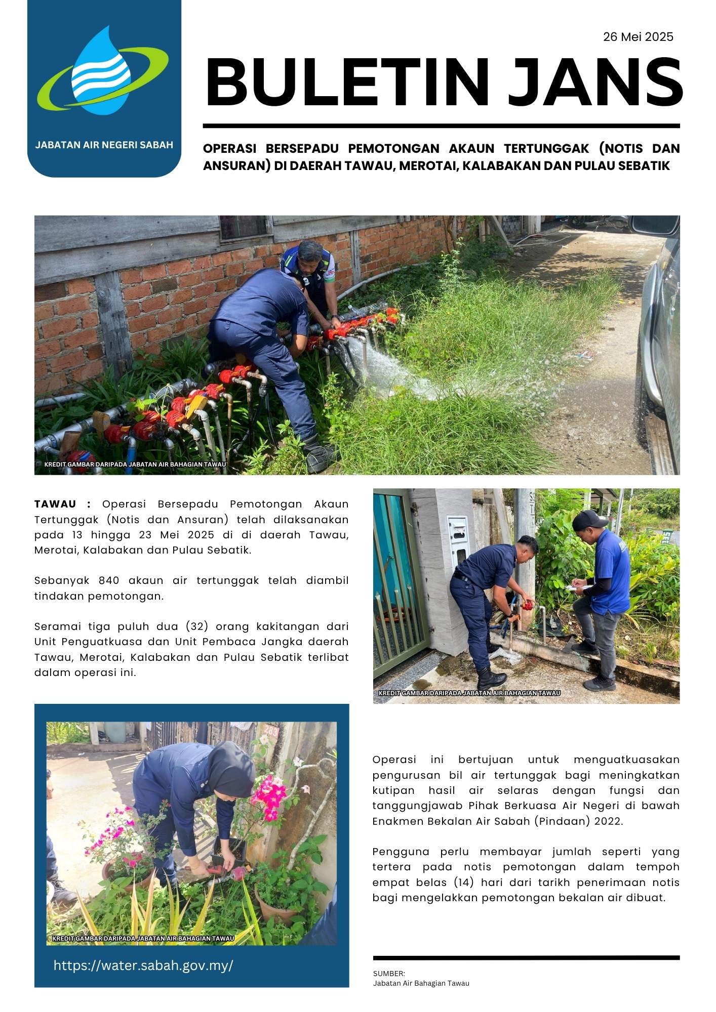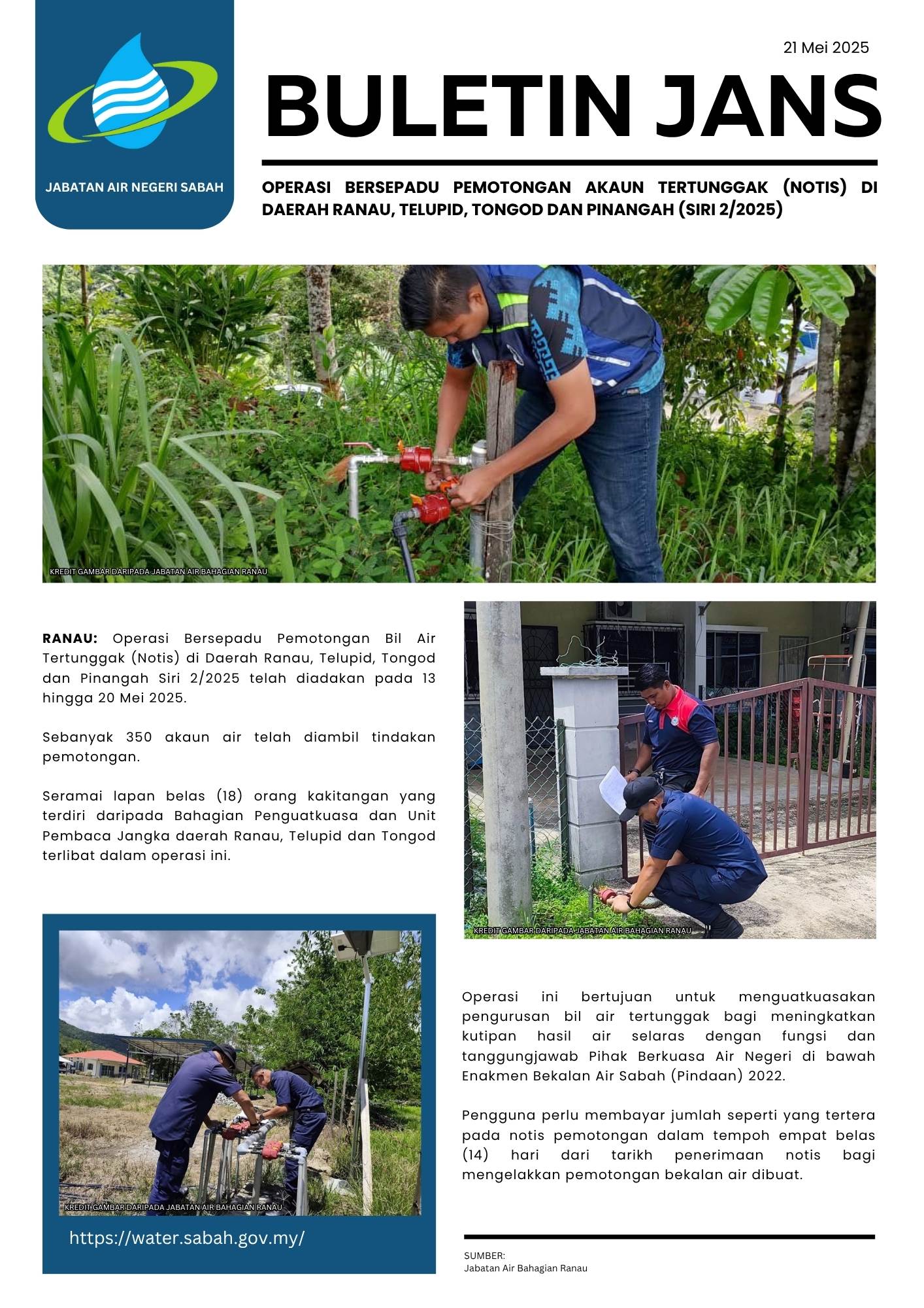 124. OPERASI BERSEPADU PEMOTONGAN AKAUN TERTUNGGAK (NOTIS) DI DAERAH RANAU, TELUPID, TONGOD DAN PINANGAH (SIRI 2/2025)