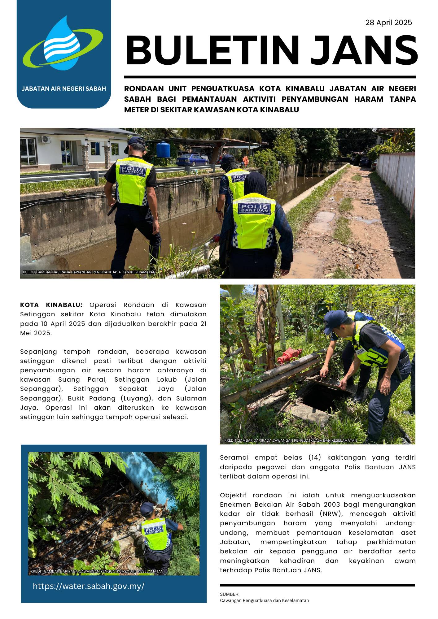 134. RONDAAN UNIT PENGUATKUASA KOTA KINABALU JABATAN AIR NEGERI SABAH BAGI PEMANTAUAN AKTIVITI PENYAMBUNGAN HARAM TANPA METER DI SEKITAR KAWASAN KOTA KINABALU