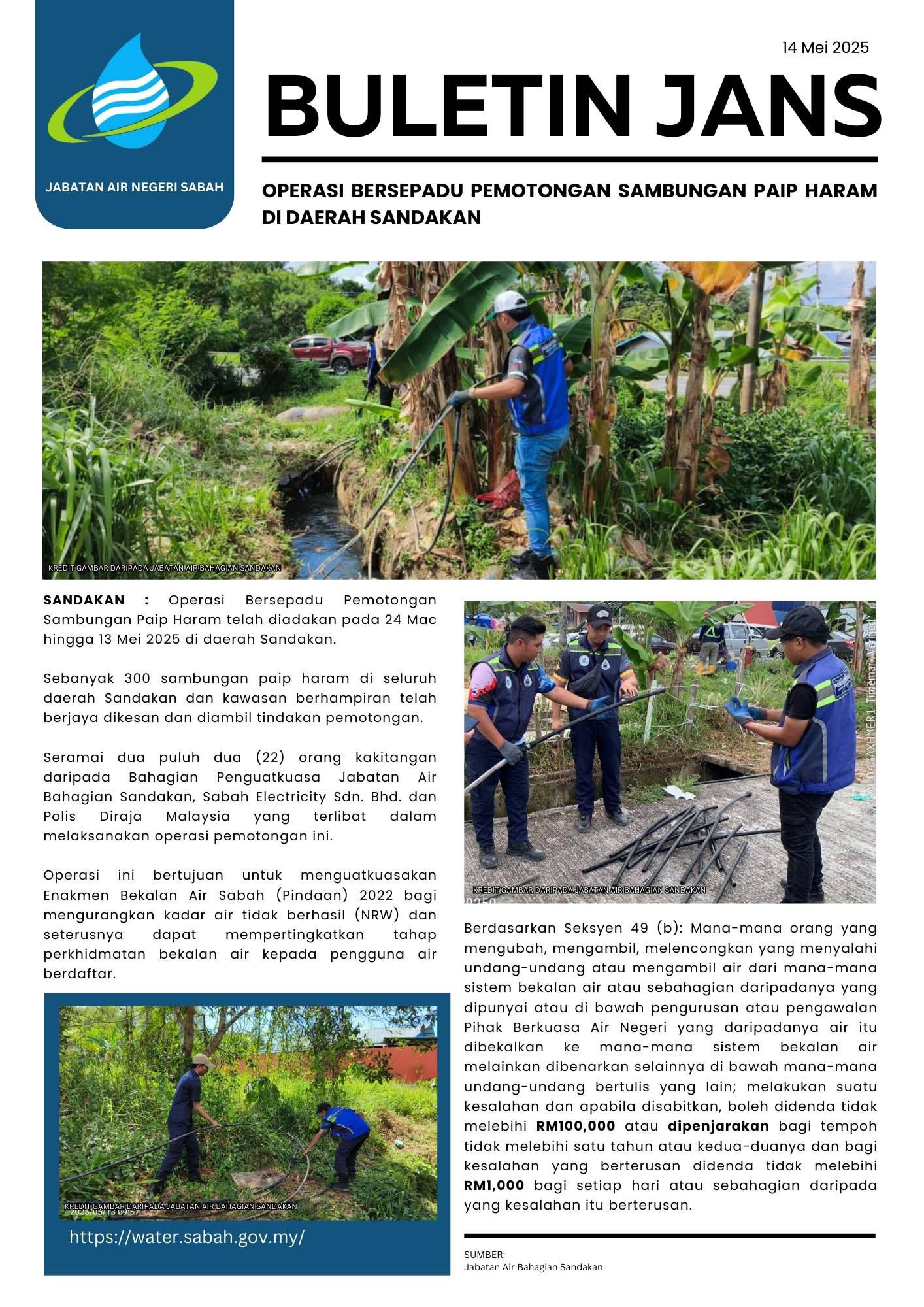 130. OPERASI BERSEPADU PEMOTONGAN SAMBUNGAN PAIP HARAM DI DAERAH SANDAKAN