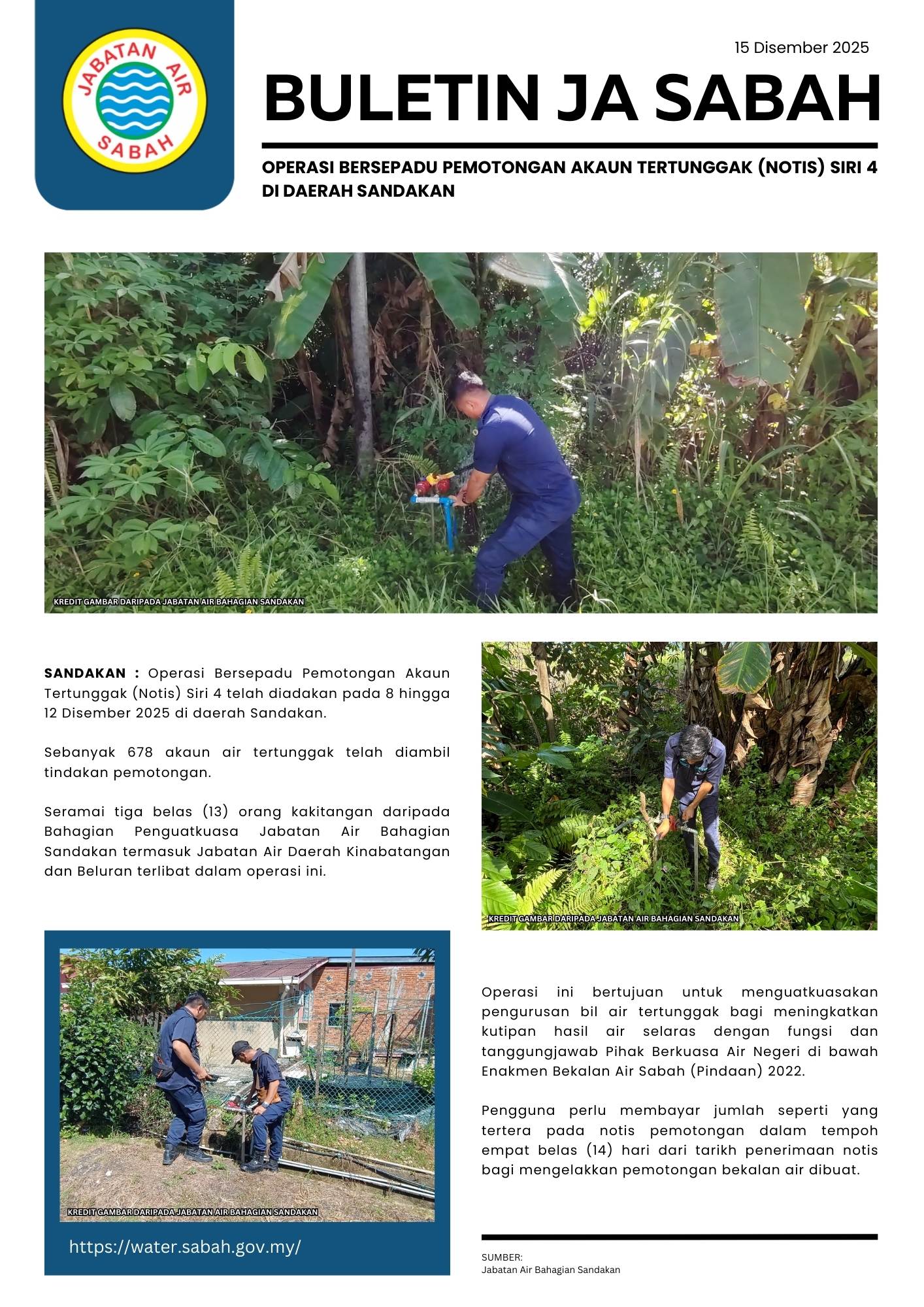 OPERASI BERSEPADU PEMOTONGAN AKAUN TERTUNGGAK (NOTIS) SIRI 4 DI DAERAH SANDAKAN