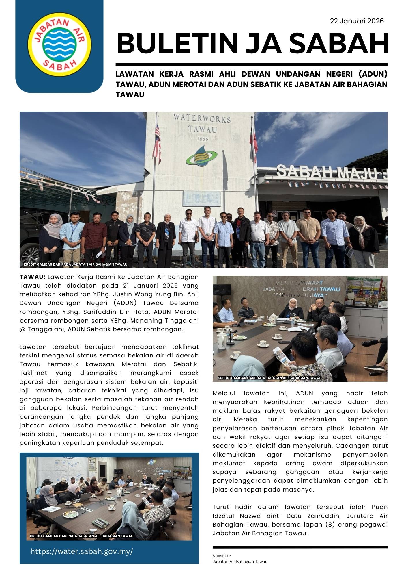 LAWATAN KERJA RASMI AHLI DEWAN UNDANGAN NEGERI (ADUN) TAWAU, ADUN MEROTAI DAN ADUN SEBATIK KE JABATAN AIR BAHAGIAN TAWAU