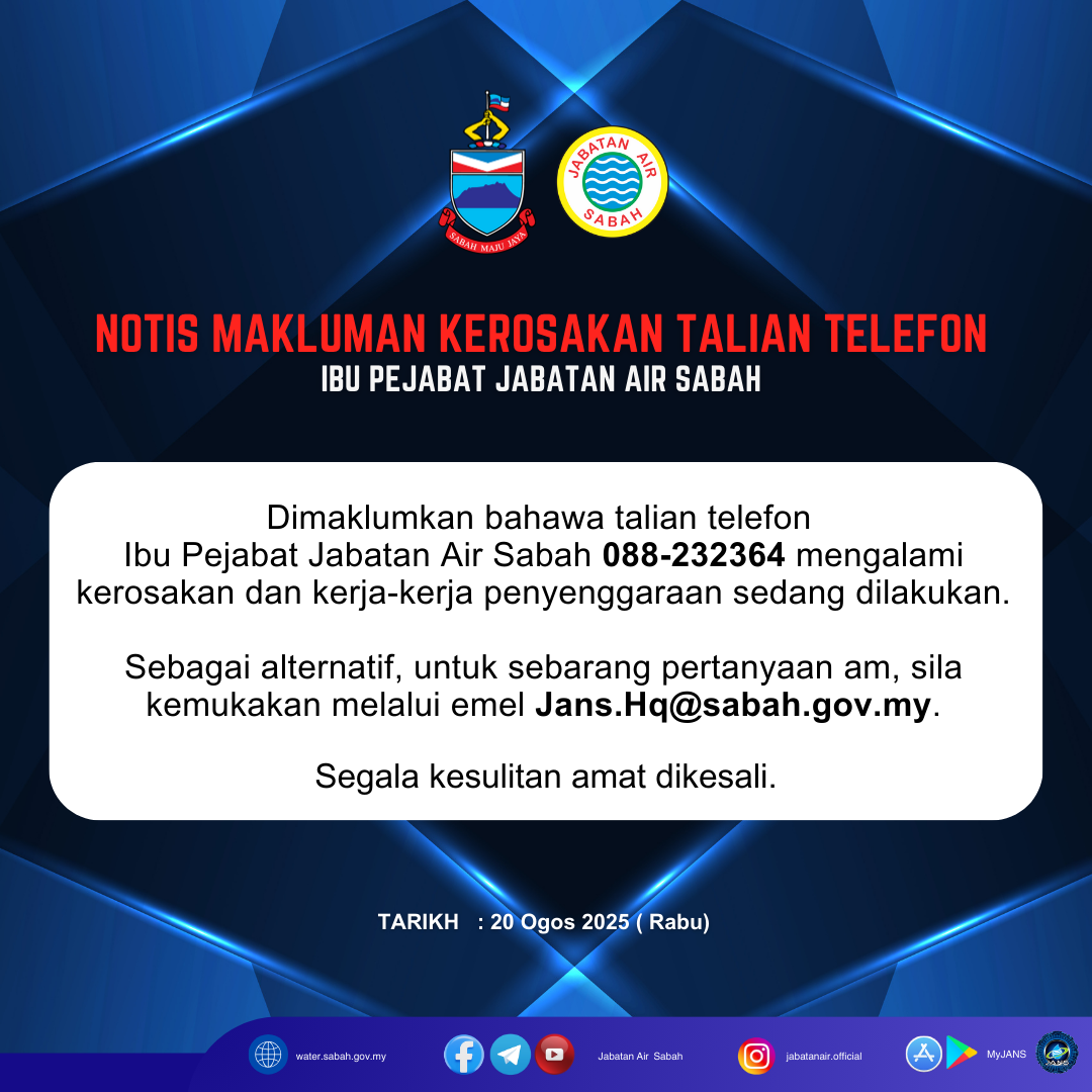 NOTIS MAKLUMAN KEROSAKAN TALIAN TELEFON IBU PEJABAT JABATAN AIR SABAH