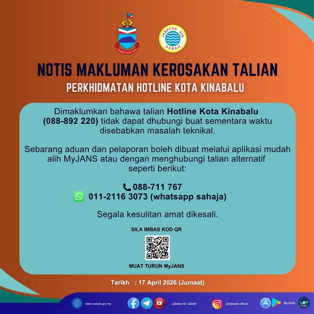 NOTIS MAKLUMAN KEROSAKAN TALIAN HOTLINE KOTA KINABALU
